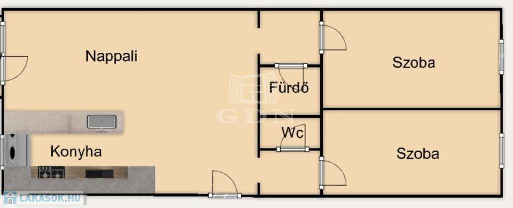 - 1+2 félszobás elrendezés – külön nyíló szobák