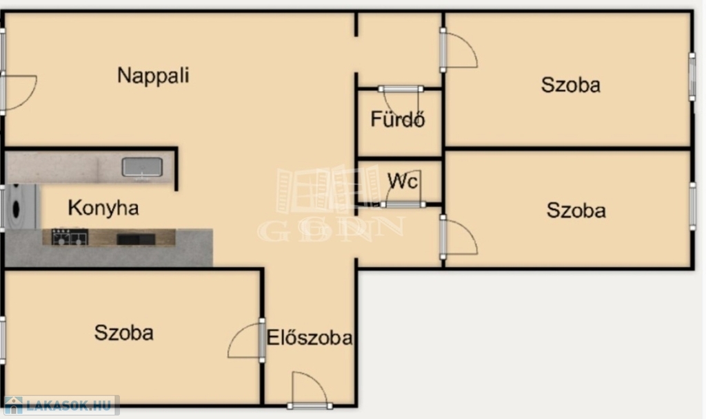 ✔ Tágas nappali + 3 külön nyíló félszoba