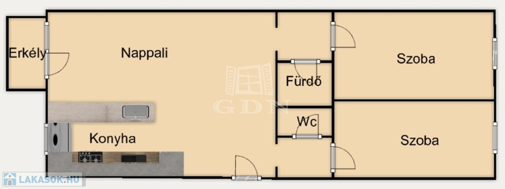 K-Ny-i tájolás, világos, jól átszellőztethető lakás