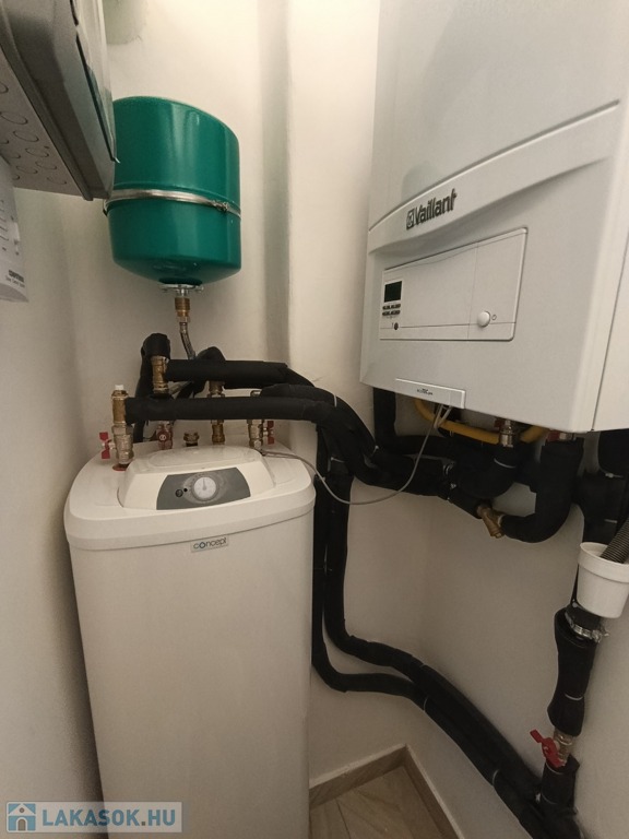 Padlófűtés és új Vaillant gázkazán, amely gondoskodik a melegvízről és a komfortos hőmérsékletről.