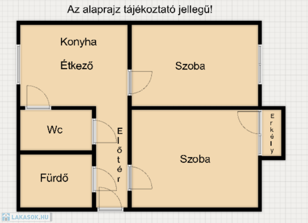 Az ingatlanban előszoba, fürdő, külön WC, két szoba, tágas konyha-étkező és gépészeti helyiség található.