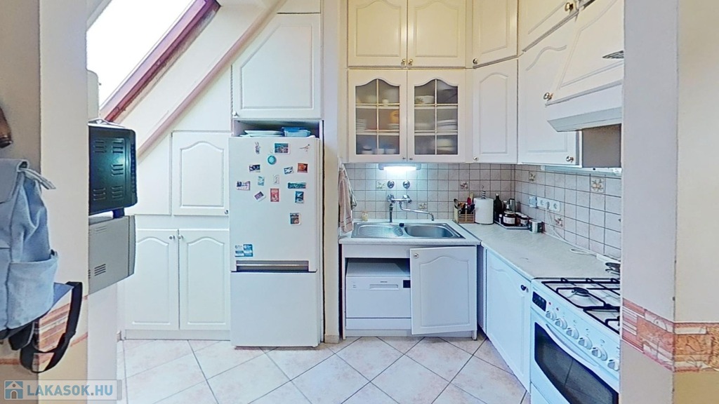 Veszprém megyében, a Csillag utcában ELADÓ 103 m2-es, belső kétszintes, tetőtéri, 3 + 2 fél szobás , kitűnő állapotú tégla lakás egy 1991-ben átadott, lift nélküli, 28 lakásos társasház 3. emeletén.