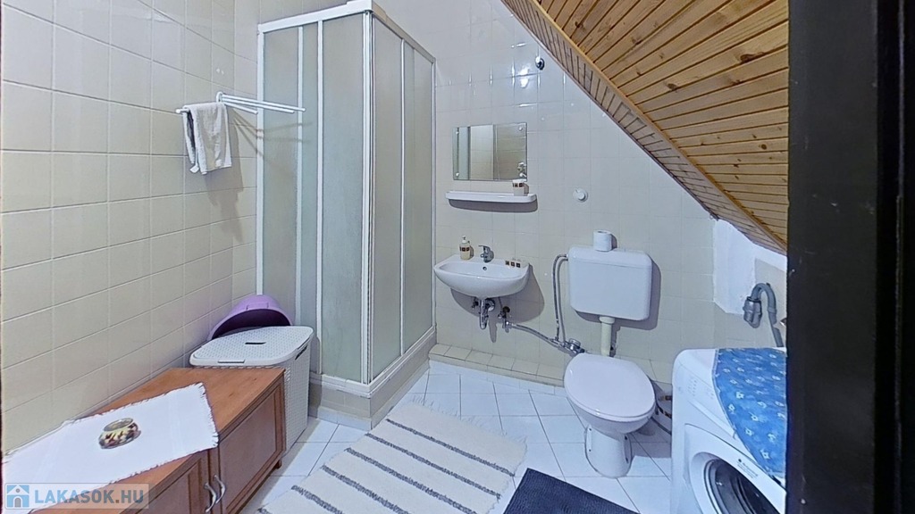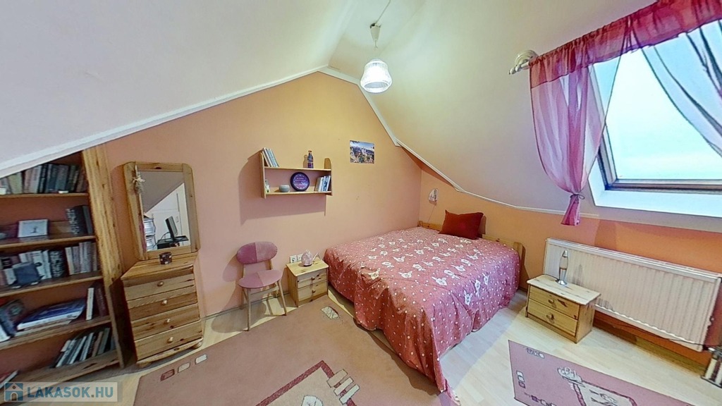 Felső szintje 31 m2, mely egy teljes értékű szobát, félszobát, fürdőt és gardróbot foglal magába.