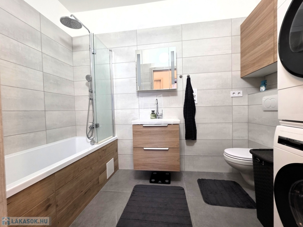 - A fürdőszobában, illetve egy különálló illemhelyiség is található a lakásban