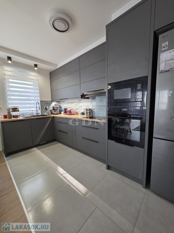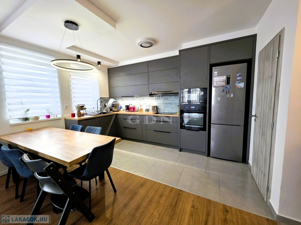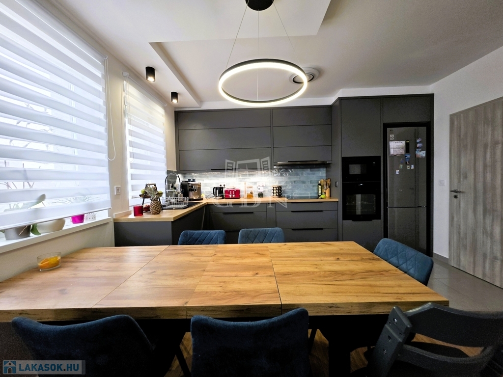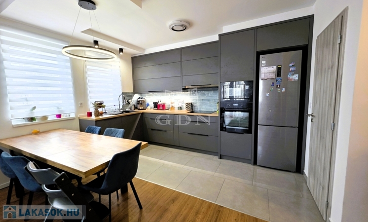 - A tágas nappali–amerikai konyhás tér a lakás valódi központja, amely gépesített konyhával várja új tulajdonosát – tökéletes helyszín a mindennapokra és a vendéglátásra egyaránt.