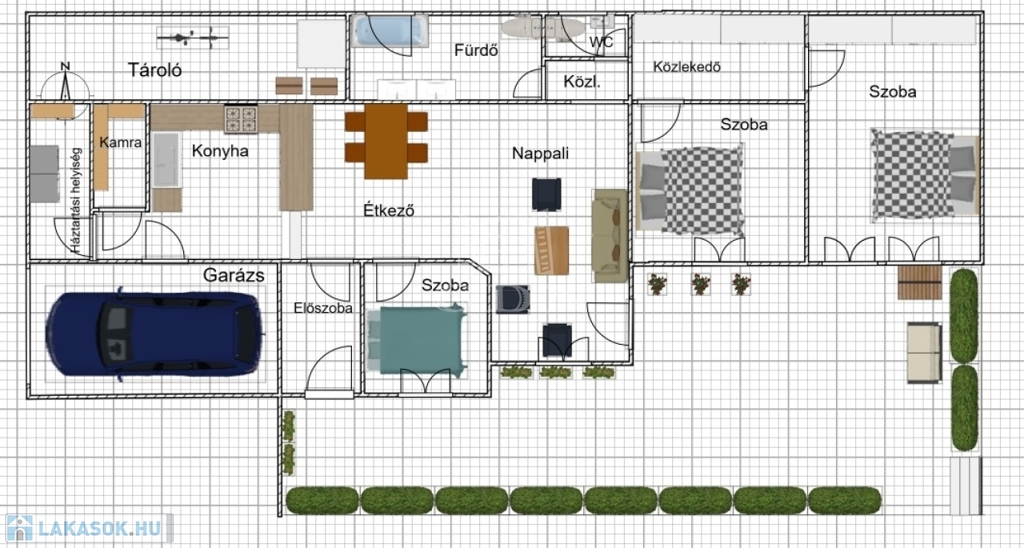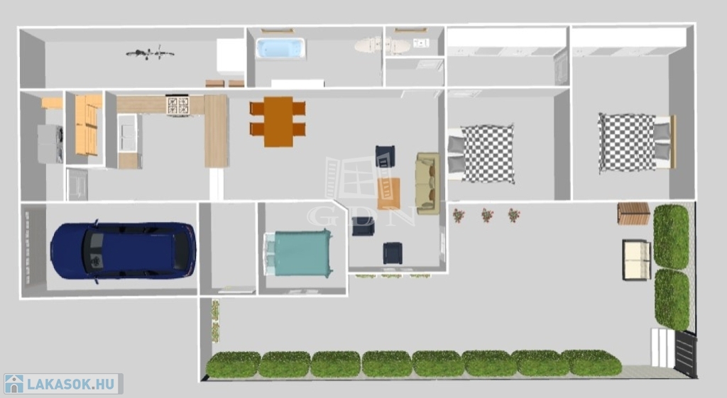 96 nm | 2+2 félszoba | földszint | déli tájolás
