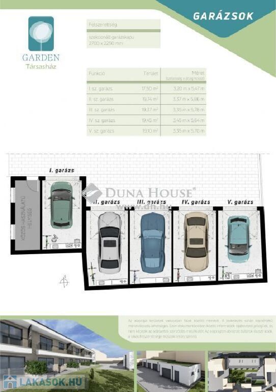 Opcionálisan rendelkezésre áll garázs vásárlási lehetőség.