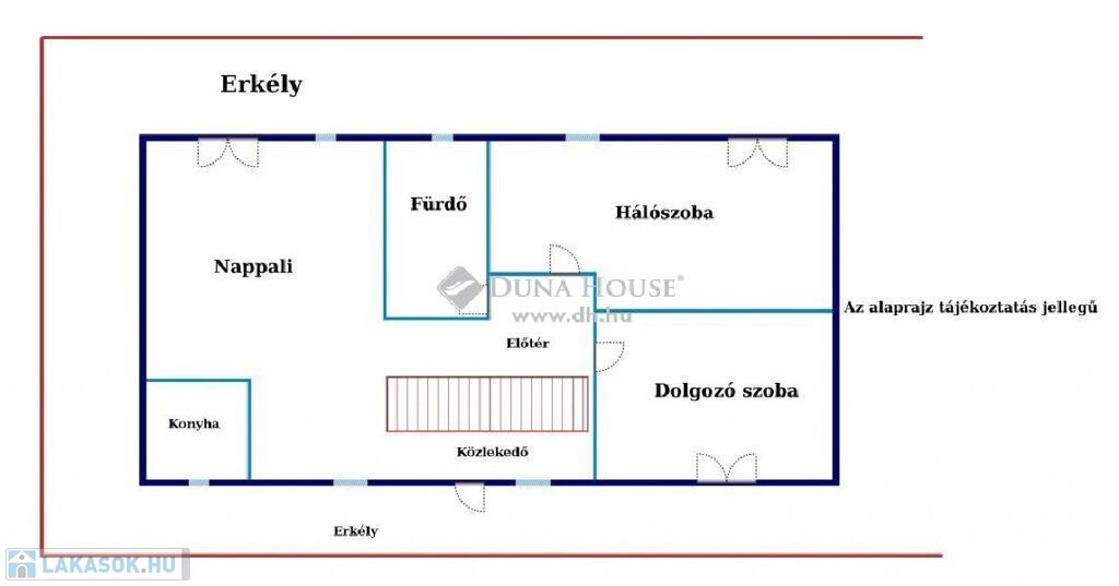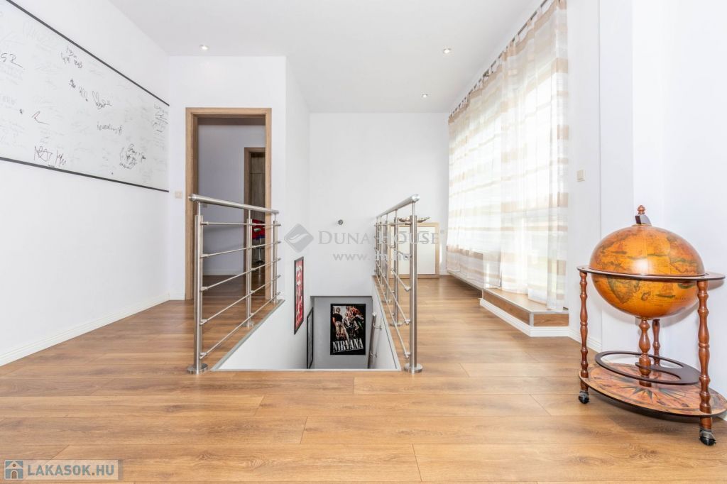 Az ingatlanba beérve az alsó szinten található az előszoba, fürdőszoba külön WC helyiséggel, gardrób és egy tágas szoba külön erkéllyel. Felső szintre felérve található a tágas nappali, konyha, dolgozószoba, fürdőszoba, hálószoba.