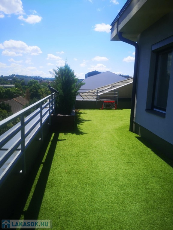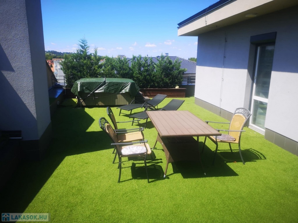 Zala vármegye, Zalaegerszeg 130m2-es belső kétszintes lakás eladó. A zalai megyeszékhely belvárosában, 2017-ben épült liftes társasház harmadik emeletén található penthouse lakás fogadószintjén közlekedő, erkélyes hálószoba, gardrób, tároló, fürdőszoba és illemhelyiség, míg az emeleten további 2 szoba, nappali, konyha, közlekedő, és fürdőszoba, valamint a közel 130m2-es műfüves, jakuzzival is ellátott tetőterasz. A klimatizált lakás melegéről gázkazán gondoskodik. Az ingatlanhoz a 16lakásos társasház zárt udvarán garázs is vásárolható, melynek ára: 10MFt.