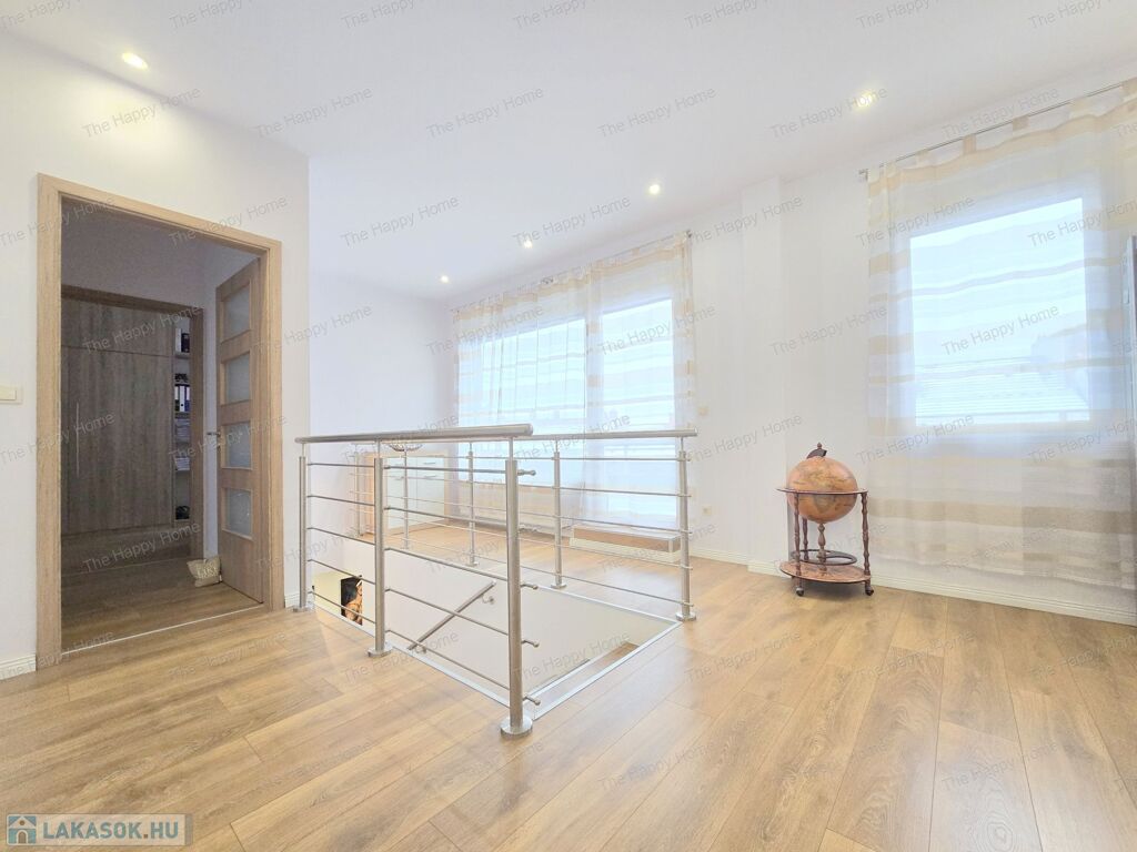 A felső szint 87 négyzetméteren nyújt NAPFÉNYES és MODERN életkörnyezetet. TÁGAS nappali, étkező, fiatalos konyha, amelyek mellett két hálószoba áll rendelkezésre, valamint egy fürdőszoba is teljes felszereltséggel.