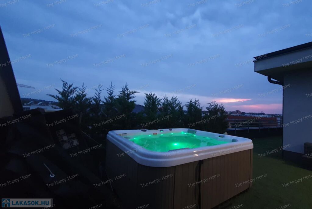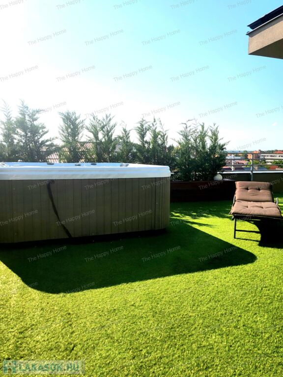A 130 négyzetméteres TETŐTERASZ a tökéletes helyszíne lehet a baráti és családi összejöveteleknek, hiszen PEZSGŐ életet biztosít a kerti bútorokkal, GRILLEZŐVEL és egy 7 személyes JACUZZIVAL.