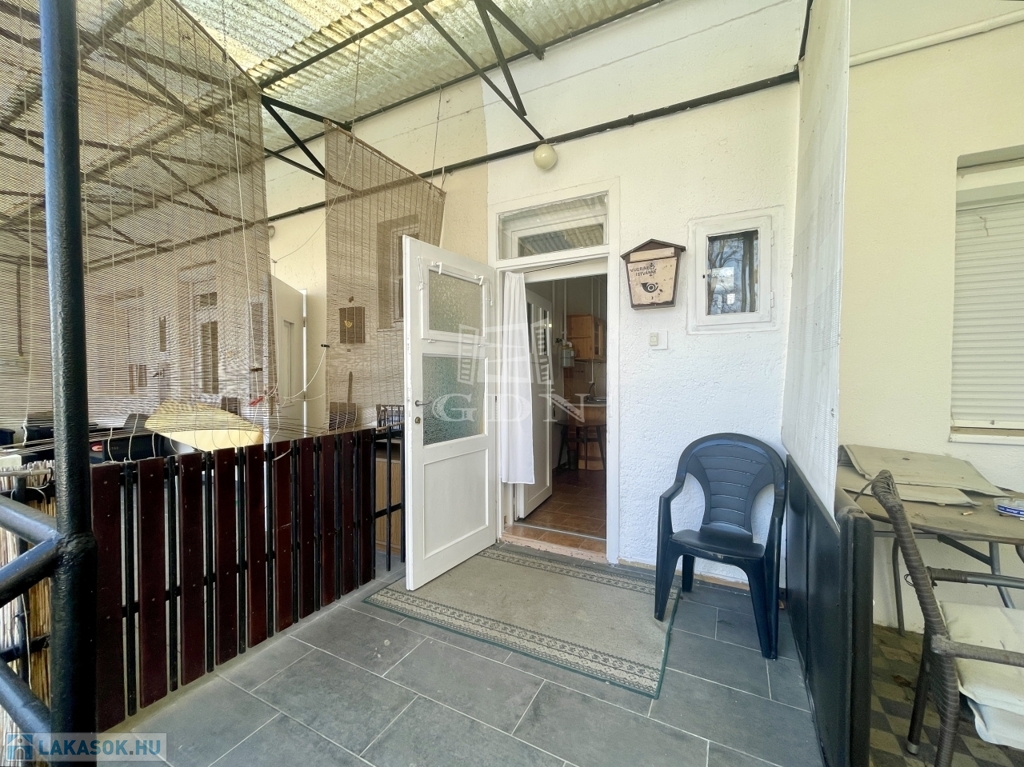 A lakáshoz tartozik egy 6 négyzetméteres terasz is, mely a közös használatú udvarra néz. Parkolás a zárt udvarban megoldott. Az ingatlanhoz tartozik egy saját használatú nagyméretű tároló is.