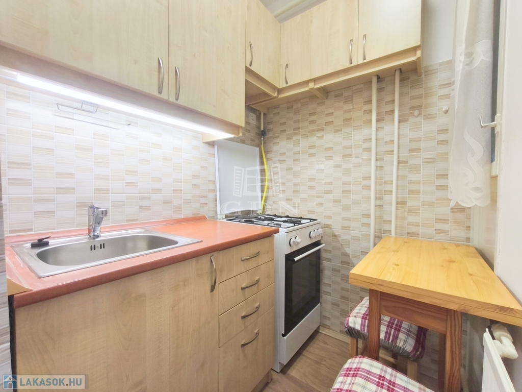 A lakás praktikus elrendezésű: a tágas, világos szoba erkélykapcsolattal bír, mely mellett külön konyha, valamint egy fürdőszoba került kialakításra.