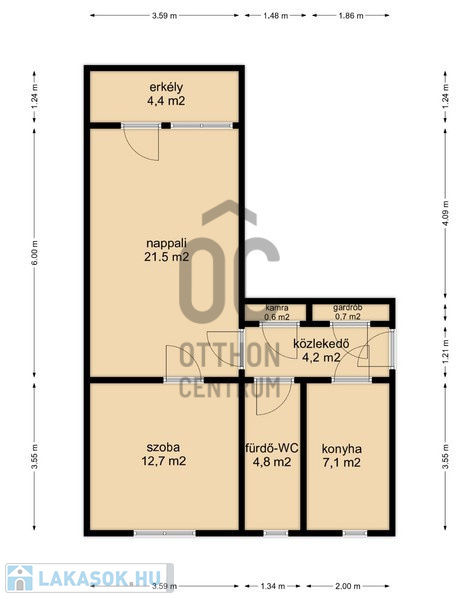 - A nappaliból nyílik a 4,4 m2-es erkély.