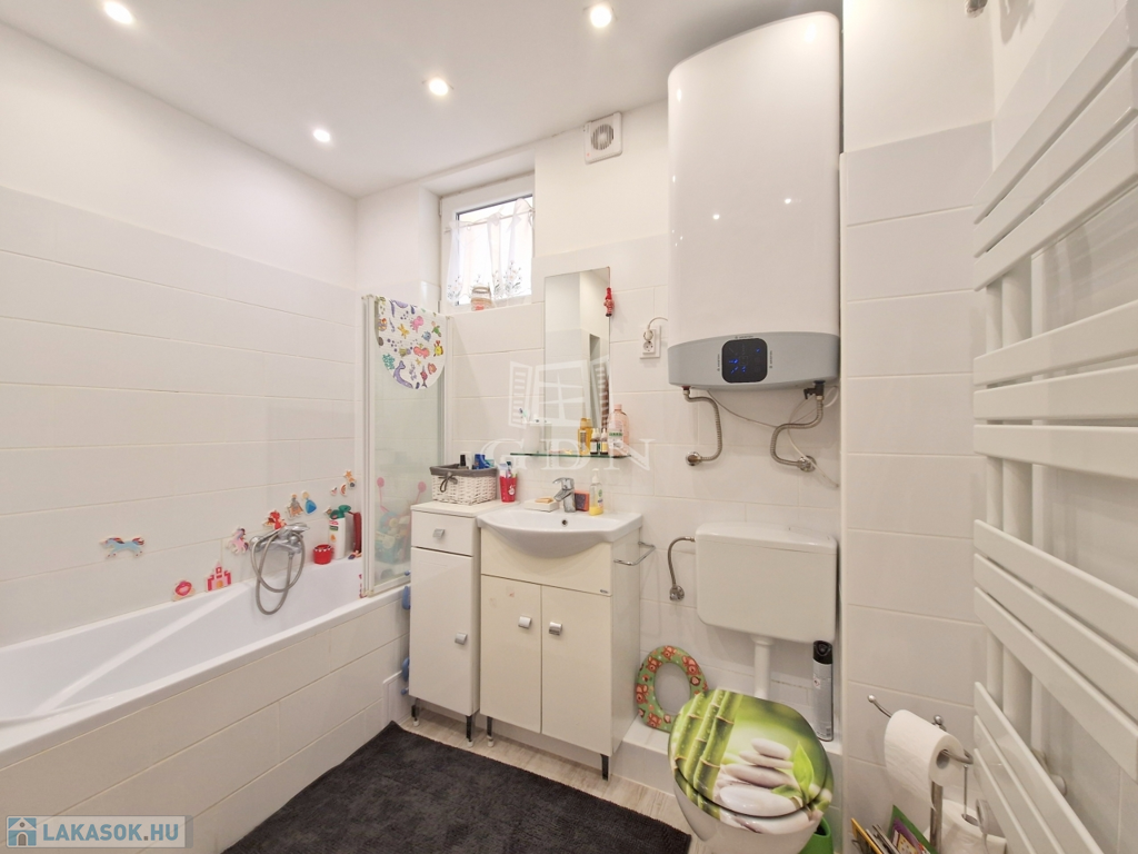 Nyílászárói MŰANYAG nyílászárók redőnnyel felszerelve. Fürdőszobája kifogástalan állapotú, éppúgy, mint a fa beltéri ajtók és burkolatok is.