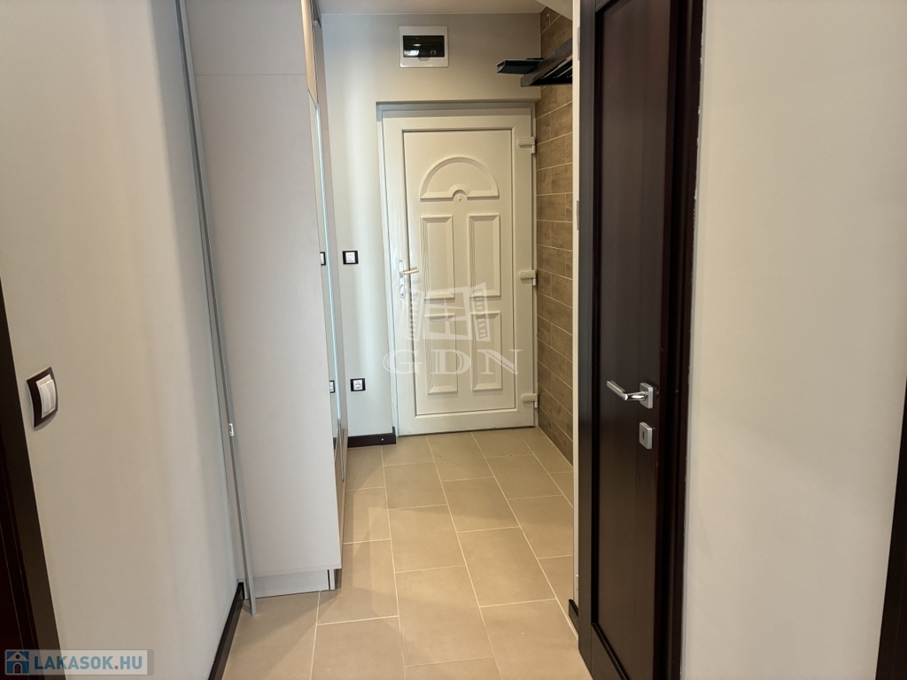 A lakás paraméterei: nappali-konyha-étkező, 1háló szoba, előtér, fürdő, tároló, wc, belső udvarra néző, nyugodt terasz.
