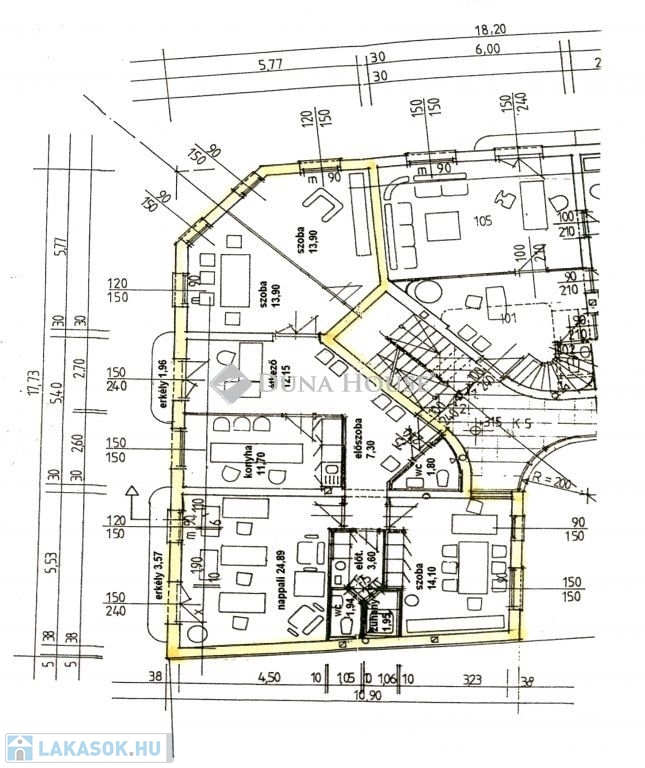 Ez az 1. emeleti, 108 m²-es ingatlan lakás ideális választás lakásnak, irodának vagy akár rendelőnek is.