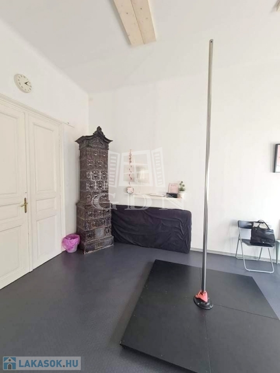 A lakásba lépve egy impozáns, közel 65 m²-es, rendkívül világos – a közelmúltban táncstúdióként működő – helyiség fogad. A nyugati fekvés és a sok nagy ablak miatt az ingatlan egész nap fényárban úszik.