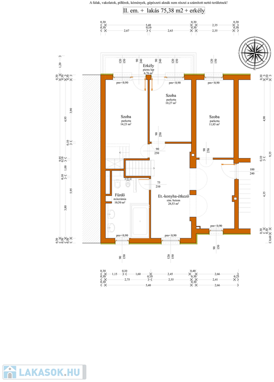 2. emeleti lakás – 78 m² + erkély 4 m²