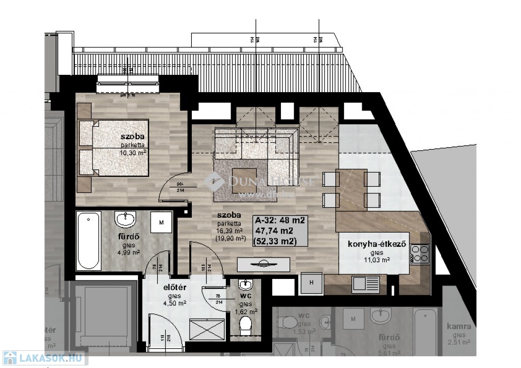 - fűtés: központi gázkazán (hőszivattyúval kiegészítve), egyedi mérőkkel ellátva