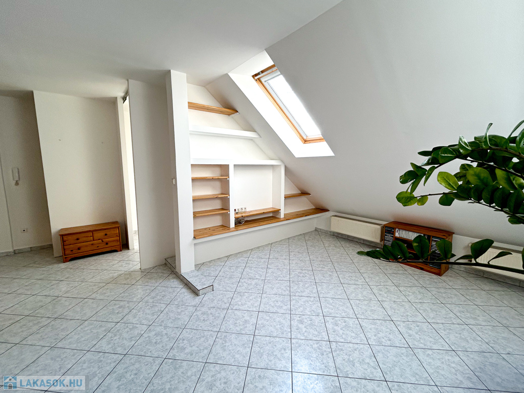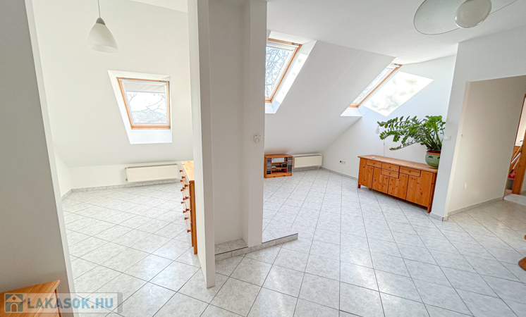 Zalaegerszeg abszolút belvárosában, a Bíró Márton utcában eladó egy nettó 56 m-es (bruttó 72 m), kiváló állapotú, 3 + 1 fél szobás tetőtéri lakás.