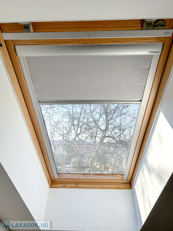 A Velux tetőablakok nemrég felújításon estek át, külső hővédő és belső sötétítő rolókkal felszereltek.
