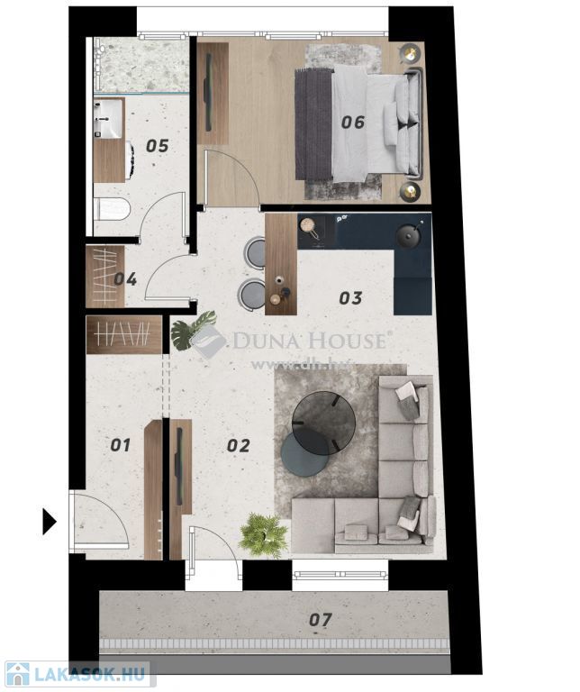 7. lakás 42,14 m2 + 5,43 m2 (össz.:47,57 m2) 49.500.000,-
