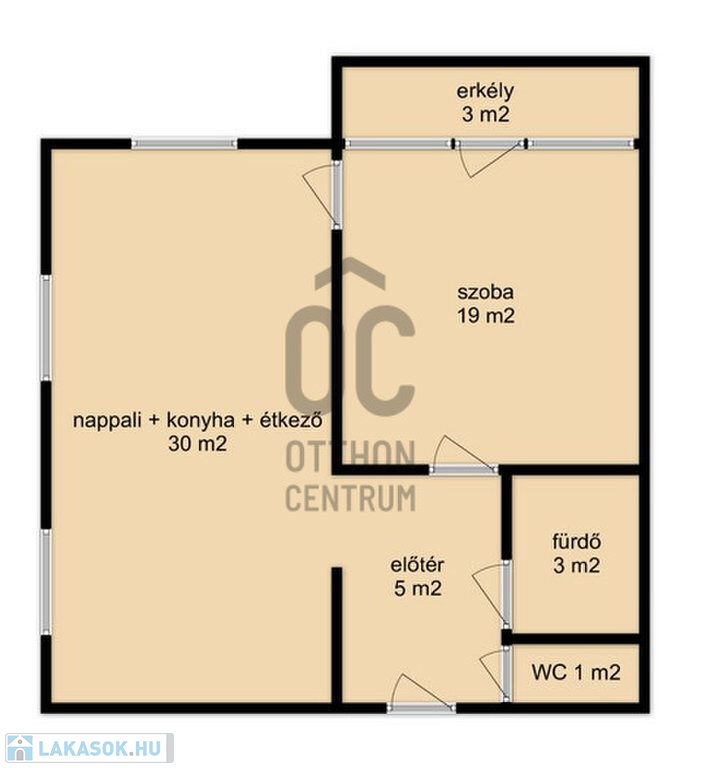 A lakás praktikus elrendezésű: előtér, tágas és világos nappali-konyha, külön nyíló hálószoba erkélykapcsolattal, zuhanyzós fürdőszoba, valamint külön WC található benne.