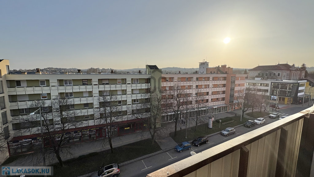 Eladó egy 58 m²-es, amerikai konyhás nappalival rendelkező, erkélyes lakás Zalaegerszeg belvárosában, liftes társasház 5. emeletén, városi panorámával.