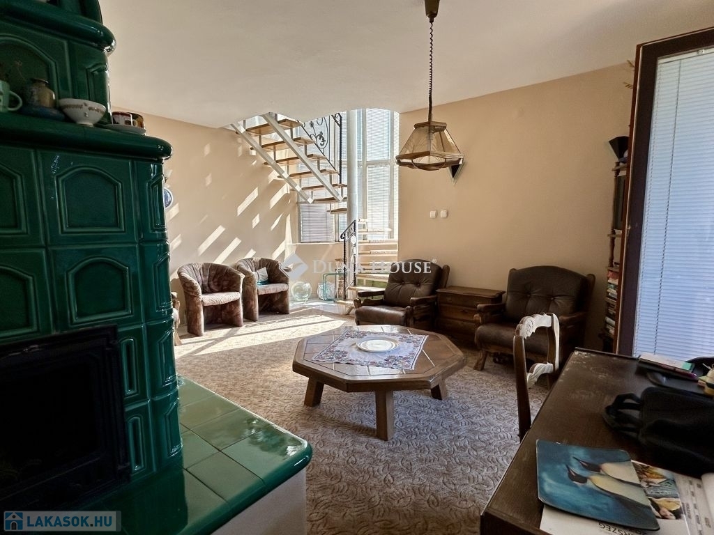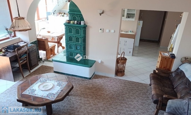 Az alsó nappaliban egy nagyon szép , gondos kezek által készített cserépkályhát is találunk, ami tényleg hangulatossá teszi a belső teret.