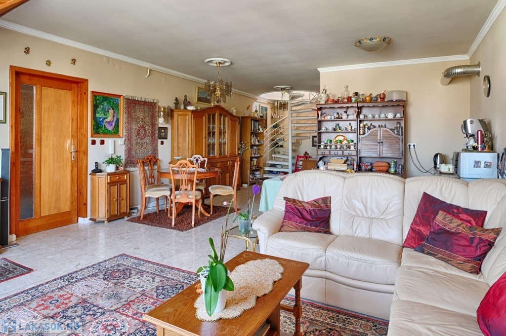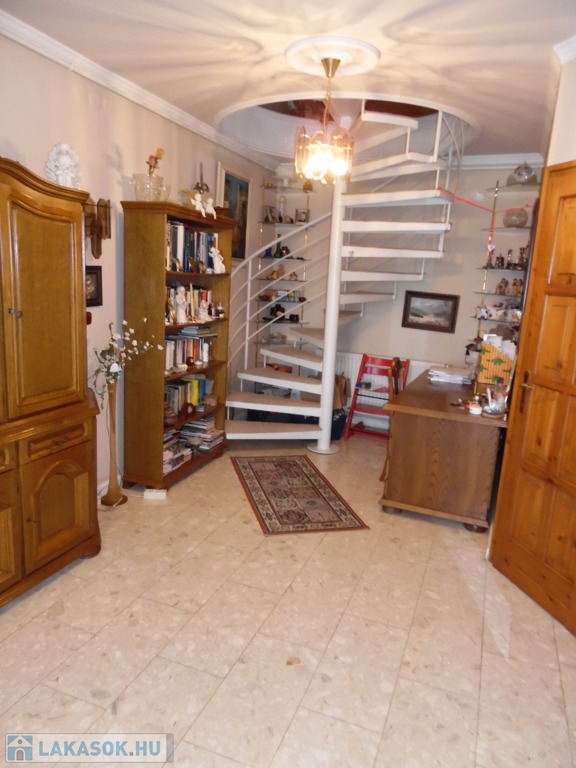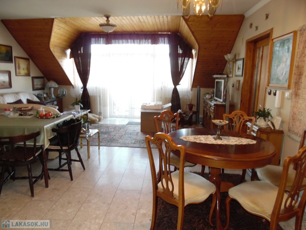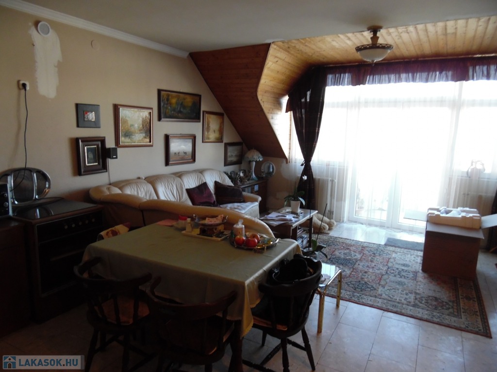 Zala megye, Zalaegerszeg 81 m2-es hasznos alapterületű lakás eladó. A zalai megyeszékhely belvárosában, a Mártírok útján, harmadik emeleti, belső kétszintes lakás eladó. Az erkélyes ingatlan a 4 szintes társasház harmadik emeletén található. A fogadószinten szélfogó, tágas nappali+konyha+étkező, fürdőszoba és kamra került kialakításra. Innen csigalépcsőn jutunk a tetőtérbe, ahol egy közlekedő, fürdőszoba, és 3db háló fogad minket, melyből az egyik jelenleg gardróbként funkcionál. A kilencvenes évek közepén épült, tehermentes lakás melegéről gáz-cirkó fűtés gondoskodik. A szigetelt épület kelet-nyugati tájolású, a lakáshoz a zárt udvarban gépkocsibeálló is tartozik.