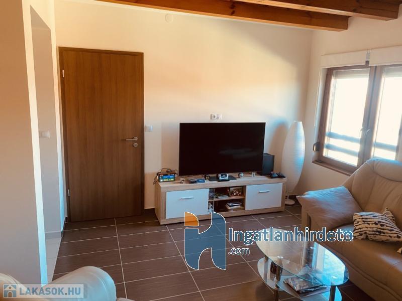 Elhelyezkedése: Belterület Emeleti elhelyezkedés: Emeleten Emelet száma: 2 Épület emeleteinek száma: 2 Tájolása: Keleti tájolású Állapota: Újszerű Komfort besorolása: összkomfortos Építési éve: 2017 Alapterülete: 89 m2 Szobák száma: 2 + 2 szoba Felújított: Felújított Felújítás éve: 2025 Közművek: Gáz, Víz, Villany, Csatorna Gázellátás: Vezetékes Vízellátás: Vezetékes víz Melegvíz-ellátás: Házközponti meleg víz Áramellátás: 230V Fűtés módja: Gáz Fűtés típusa: Központi egyedi mérővel Homlokzat állapot: Újszerű Építési mód: Tégla Tető formája: Magas Tető anyaga: Cserép, Beton tetőcserép Kilátás: Utcafronti kilátás, Udvari kilátás Napelem: Nincs Jellemzői: Alacsony rezsi, Csendes környék, Jó közlekedés, Redőny, Étkező, Amerikai konyha, Beépített konyhabútor, Kaputelefon, Egyedi vízóra , Egyedi hőfogyasztás mérő, Kapunyitó automatika, Beépített tetőtér Energetikai besorolás: Nincs adat Egyéb jellemzők: Erkély Tv, Internet: Kábeltévé, Internet Közelben: Iskola, Óvoda, Vasútállomás, Autóbuszállomás, Helyi autóbuszállomás, Orvosi rendelő, Bolt, Gyógyszertár, Postahivatal, Vendéglátó egység Rezsi költség(Ft): 15000 Terhelések: Tehermentes ingatlan Eladásra vonatkozó információk: Az ár tartalmazza a teljes berendezést, Azonnal beköltözhető