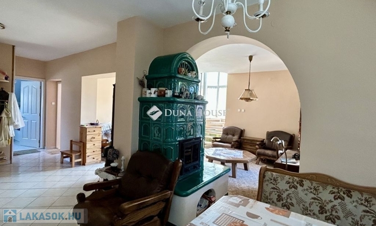 Az alsó nappaliban egy nagyon szép , gondos kezek által készített cserépkályhát is találunk, ami tényleg hangulatossá teszi a belső teret.