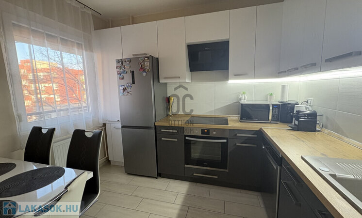 A déli tájolású, világos lakás elrendezése praktikus és kényelmes: nappali, 2 külön nyíló szoba, modern gépesített konyha–étkező, fürdőszoba, külön WC és közlekedő. A lakás kényelmét egy 8 m²-es, nyugodt elhelyezkedésű erkély is növeli, amely nem a forgalmas utcára néz, így kellemes, csendes környezetet biztosít.