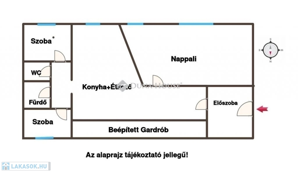 A nappali + 2 külön nyíló szoba kényelmes életteret biztosít, a konyha étkezővel a mindennapok központja lehet. A külön fürdő és WC igazi előny a rohanós reggeleken.