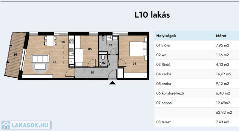 - 66,58 négyzetméter, alacsony energiaigényű, 7,42 négyzetméteres terasszal