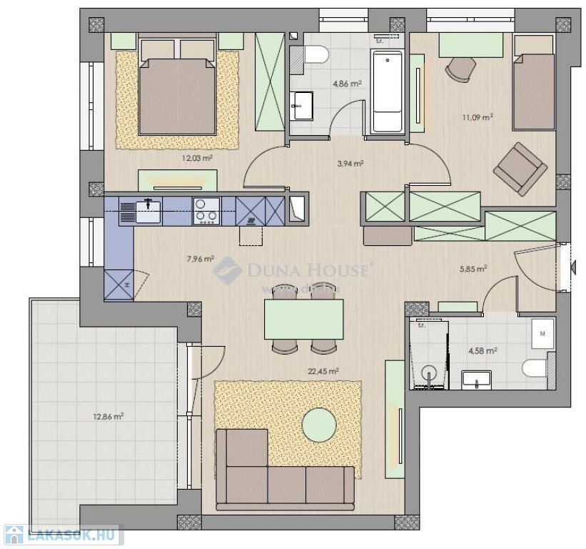 Ez a lakás az EARLY BIRD akcióban most 5.000.000.-Ft kedvezménnyel, 74.900.000.-Ft helyett, 69.900.000.-Ft-ért köthető le.