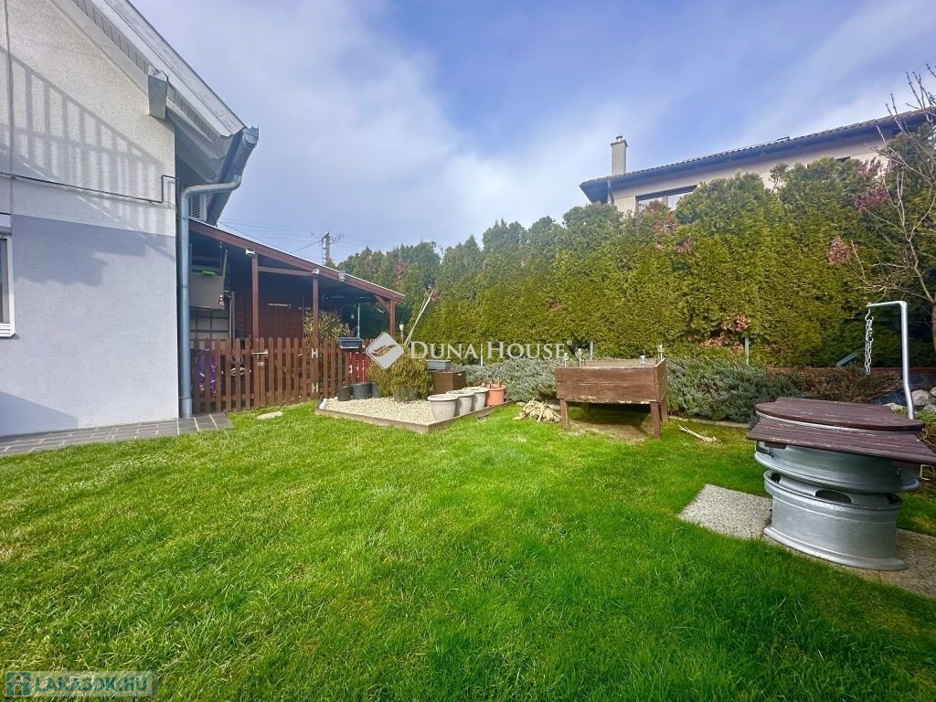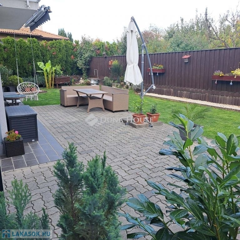 A kert ideális pihenésre, családi és baráti összejövetelekre, továbbá egy kis tároló is rendelkezésre áll.