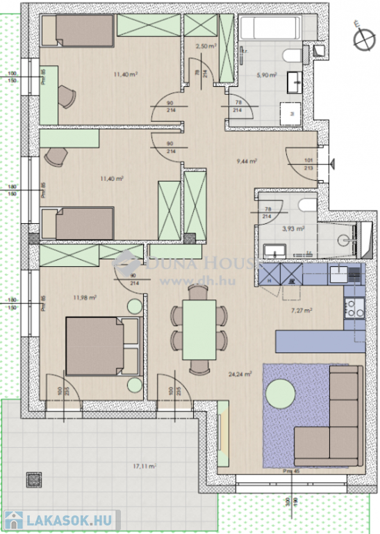 magas műszaki felszereltségre (hőszivattyús fűtés, klíma, modern nyílászárók, redőnyelőkészítés, igényes burkolatok)
