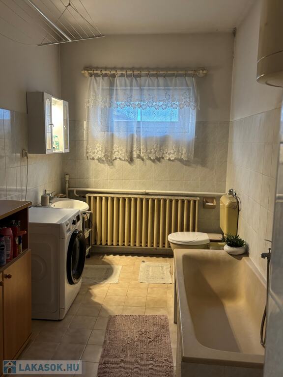 Az ingatlan kényelmes, minden igényt kielégítő, 180 nm nagyságú. Található benn egy tágas nappali, kettő nagy szoba, három félszoba, egy gardrób, két fürdőszoba, egy különálló WC, jól felszerelt konyha, kamra, kazánház és garázs. A konyhában mosogatógép, villanytűzhely és sütő, páraelszívó készülék, valamint beépített hűtőszekrény biztosítja a kényelmet. A garázsban szerelőakna és rengeteg tárolási lehetőség van. Fűtése Totya 55-ös vegyestüzelésű kazán. A gázkazánt évek óta nem használják. A ház légkondicionálóval ellátott. A meleg vizet gázbojler biztosítja, de villanybojler is rendelkezésre áll.