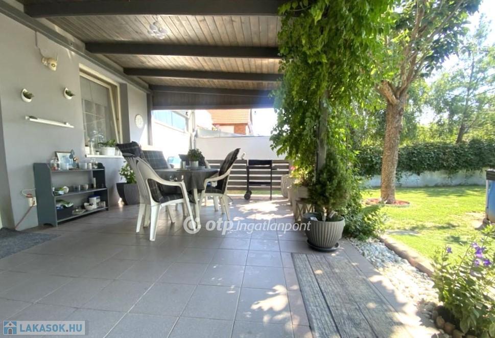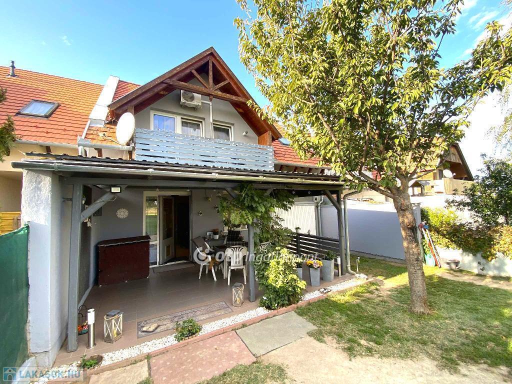 A Balaton déli partján, Zamárdiban 136 m2-es 4 hálószobás ház eladó. A város zöldövezeti részén, 444 m2-en telken fekvő kétszintes ház földszinti helyiségei: amerikai konyhás nappali, fedett terasz, háló, fürdő, wc. Az emeleten 3 háló, fürdőszoba, wc és egy jelenleg tároló/gardrób szobaként funkcionáló helyiség, amiből igény esetén még egy szoba kialakítható. A 25 m2-es fedett autóbeálló beépítésére is van lehetőség. Az emeleten egy szoba erkélyre nyílik, a földszinten az amerikai konyhás nappali pedig terasz kapcsolatos. A szomszédos egységeket dupla 38 cm-es Porotherm tégla választja el, a két egység között légréssel, így az ingatlan teljesen szeparált. A ház 2005-ben épült, azóta többszöri felújításon esett át, kívül-belül jó állapotú. Automata kapunyitás és riasztó vezetékes előkészítése megtörtént. Fűtéséről cirkó gázkazán gondoskodik, radiátoros hőleadással, az emeleten hűtő-fűtő klíma biztosítja a kellemes hőmérsékletet. A lakótér alapterülete 109 m2, a terasz, erkély, autóbeálló 50%-kal került beszámításra.