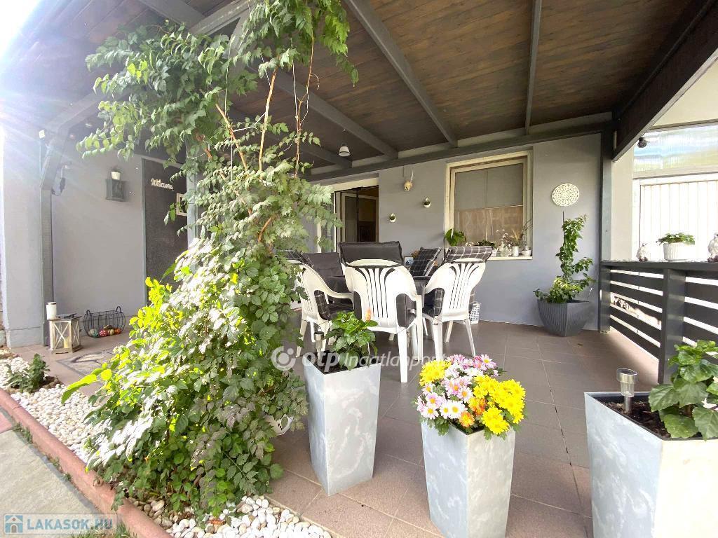 A Balaton déli partján, Zamárdiban 136 m2-es 4 hálószobás ház eladó. A város zöldövezeti részén, 444 m2-en telken fekvő kétszintes ház földszinti helyiségei: amerikai konyhás nappali, fedett terasz, háló, fürdő, wc. Az emeleten 3 háló, fürdőszoba, wc és egy jelenleg tároló/gardrób szobaként funkcionáló helyiség, amiből igény esetén még egy szoba kialakítható. A 25 m2-es fedett autóbeálló beépítésére is van lehetőség. Az emeleten egy szoba erkélyre nyílik, a földszinten az amerikai konyhás nappali pedig terasz kapcsolatos. A szomszédos egységeket dupla 38 cm-es Porotherm tégla választja el, a két egység között légréssel, így az ingatlan teljesen szeparált. A ház 2005-ben épült, azóta többszöri felújításon esett át, kívül-belül jó állapotú. Automata kapunyitás és riasztó vezetékes előkészítése megtörtént. Fűtéséről cirkó gázkazán gondoskodik, radiátoros hőleadással, az emeleten hűtő-fűtő klíma biztosítja a kellemes hőmérsékletet. A lakótér alapterülete 109 m2, a terasz, erkély, autóbeálló 50%-kal került beszámításra.