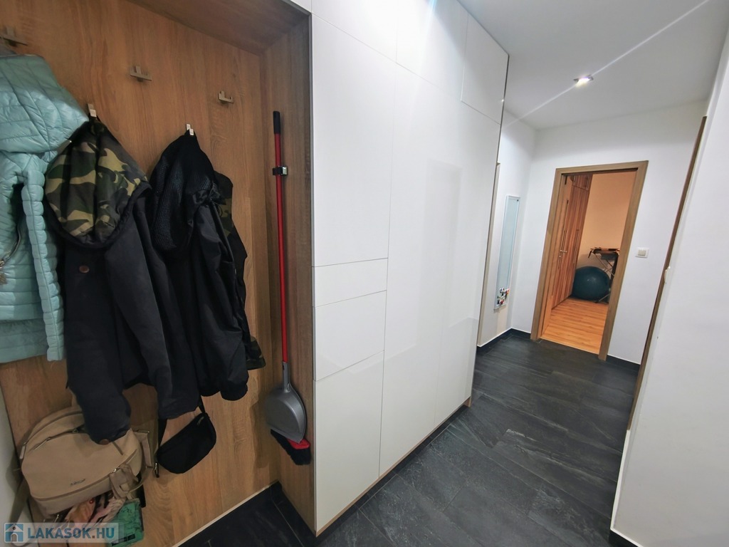A beépített szekrénnyel ellátott előszoba , a modern konyha , a klímatizált hálószoba , a szobából nyíló kialakított gardrób melyek mind azt sugallják, hogy a jelenlegi tulajdonos a kényelemre törekedett.