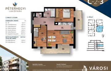 Alapterülete 65,73 m2 + 15,32 m2 erkély.