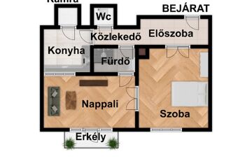 -77m2-es lakás(1 lakószoba, fürdőszoba, wc,konyha, kamra, nappali és közlekedő)