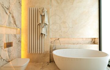 A kiemelkedően gazdaságos levegő-víz hőszivattyús rendszer biztosítja otthona fűtését és hűtését, míg a hővisszanyerős szellőztetőrendszer friss és tiszta levegőt garantál. A szaniterek a legmagasabb minőségi követelményeknek megfelelően kerültek kiválasztásra, biztosítva ezzel az otthoni wellness élményt minden nap. A 2 db 8 személyes liftnek köszönhetően a lakás megközelítése akadálymentes a garázsból.