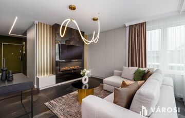 - **Helyiségek:** 2 szoba, 1 nappali, amerikai konyha, fürdőszoba és külön WC a maximális kényelem érdekében.