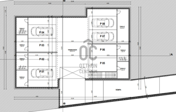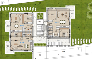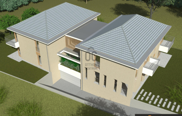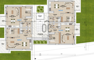 7 lakásos társasház, földszint + emeleti kialakítással, garázsok pince szinten .