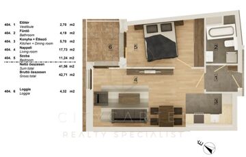 A liftes társasház 4. emeletén található, 42,71 nm-es, (41,36 nm lakás 4,32 nm loggiával) 2 szobás lakás korszerű hőszivattyús fűtés–hűtéssel és teljes körű okosotthon-rendszerrel felszerelve várja új tulajdonosát. A burkolatok még választhatók, így a leendő tulajdonos saját ízlésére szabhatja az ingatlant.