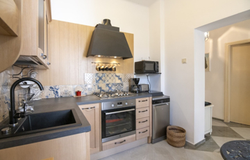 A konyhabútor méretre készült. Az ingatlan kiválóan alkalmas középkorúaknak, időseknek, kisgyereket nevelőknek egyaránt, akik szeretnének egy akadálymentesített, rendezett kerttel rendelkező lakást a város szívében.